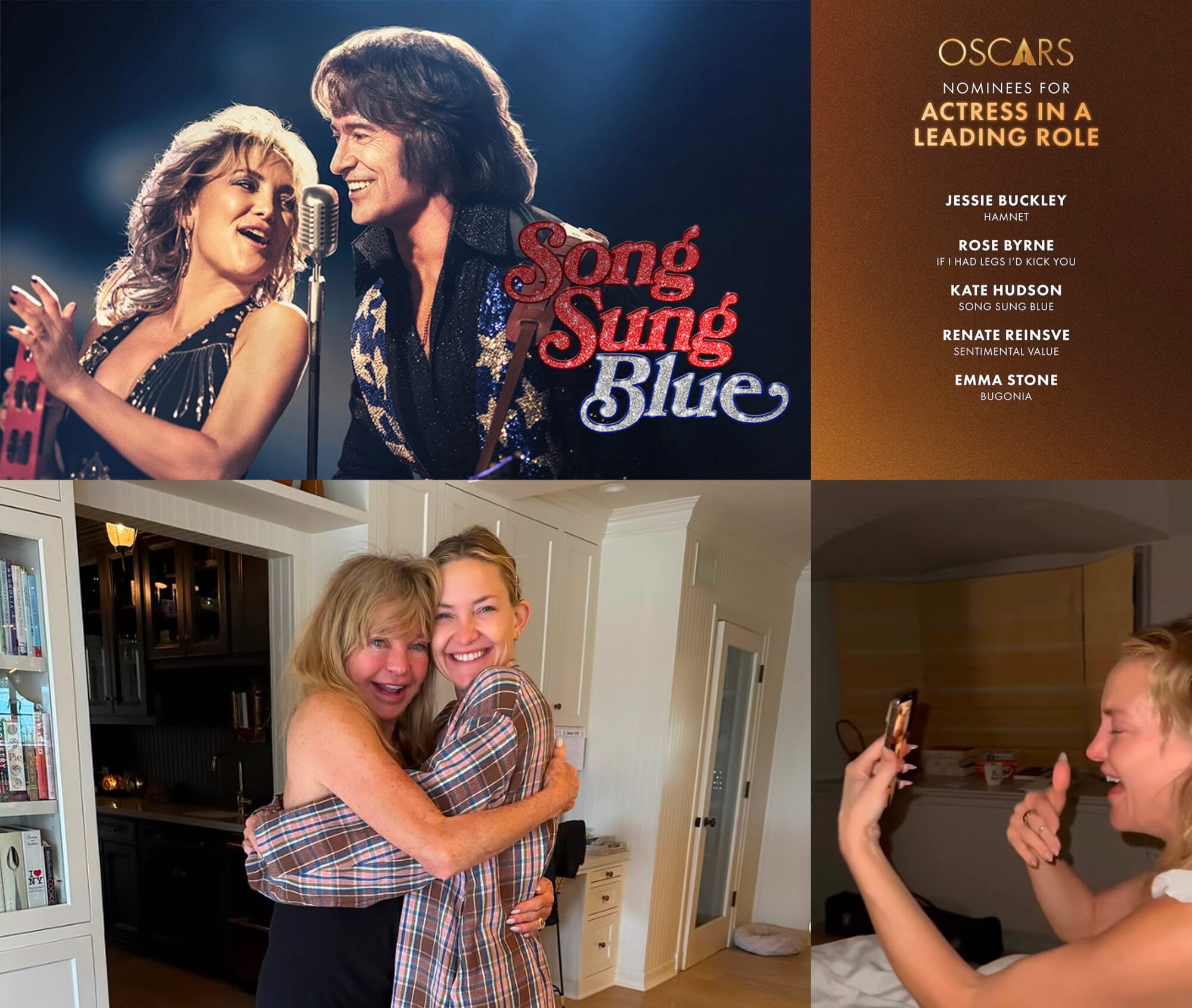 V četrtek, 22. januarja, je bila 46-letna zvezdnica, Kate Hudson, nominirana v kategoriji za najboljšo igralko na podelitvi oskarjev leta 2026 za film Song Sung Blue, poleg Jessie Buckley ( Hamnet ), Rose Byrne ( Zlati globus 2026, If I Had Legs I’d Kick You ), Renate Reinsve ( Sentimental Value ) in Emme Stone ( Bugonia ).